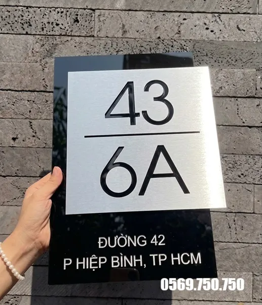 Bề mặt mica sáng bóng kết hợp nền alu chắc chắn giúp biển số nhà trở nên nổi bật và tăng tính thẩm mỹ cho không gian lắp đặt.