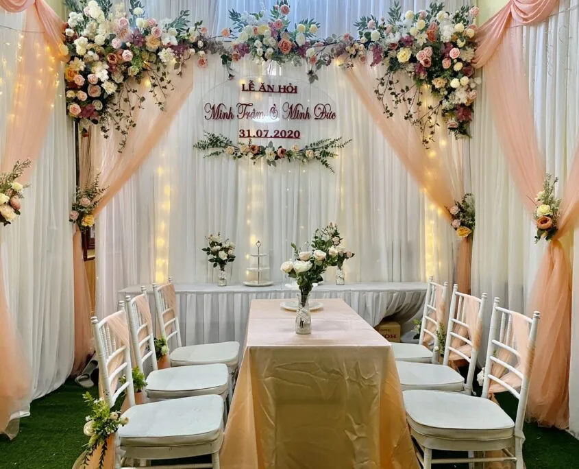 Trang trí tiệc cưới hay trang trí đám cưới không chỉ đơn thuần là sắp xếp hoa và ánh sáng, mà còn là cách để bạn gửi gắm cá tính, câu chuyện tình yêu và dấu ấn riêng trong ngày trọng đại. Một không gian cưới được trang trí tinh tế sẽ giúp bạn ghi lại những khoảnh khắc đáng nhớ, gây ấn tượng với khách mời và nâng tầm cảm xúc cho toàn bộ buổi lễ.